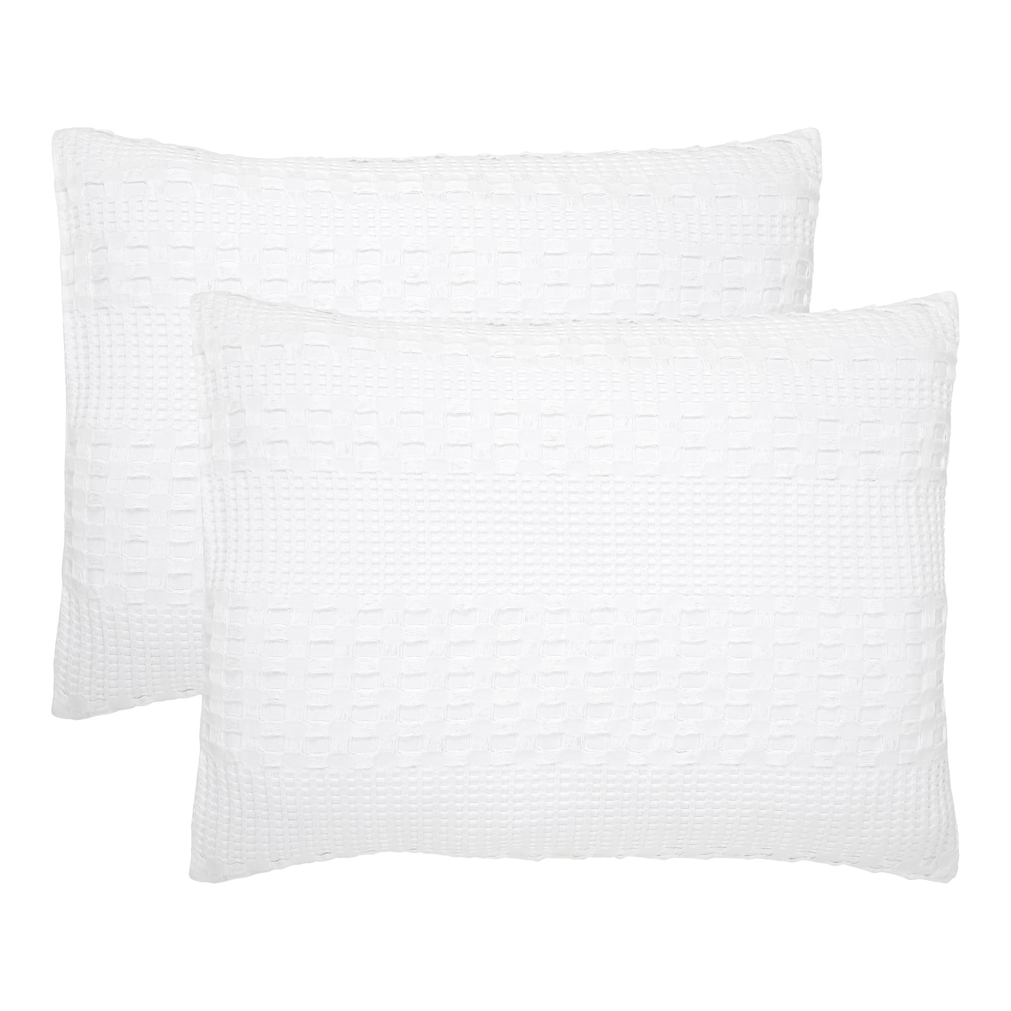 Premium Construction - Crafted from 100% pure, high-quality cotton with an intricate and unique waffle weave, these pre-washed 20x26 inch standard shams provide a soft, breathable touch and sophisticated texture for enduring comfort and style in any farmhouse or boho-inspired bedroom.