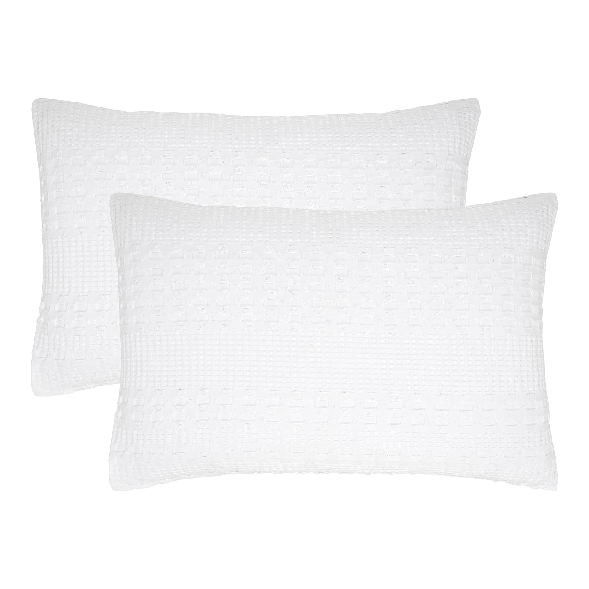 Premium Features - This 20x30 inch queen sham set, crafted from 100% premium cotton, features an intricate, unique waffle weave texture and is pre-washed for a soft, lived-in feel and enduring quality.