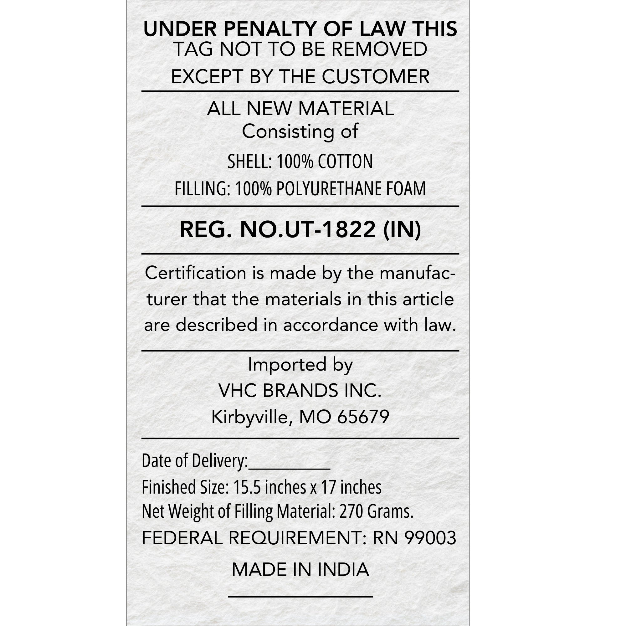 • Material: 100% Cotton Shell, Foam Insert