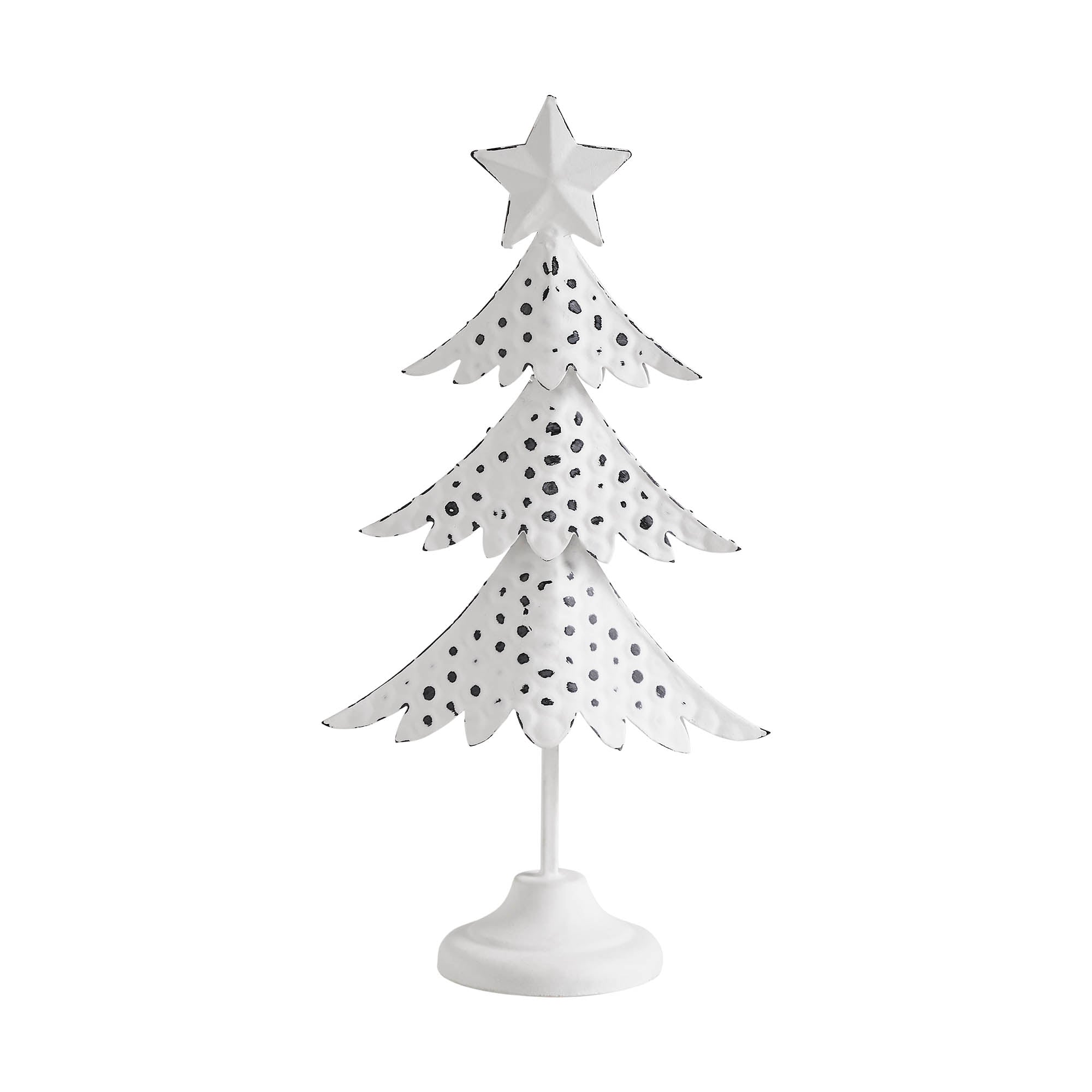 • Crafted from durable metal, this figurine features a standing Christmas tree design with a charming star topper, adding a touch of festive charm to any room.
