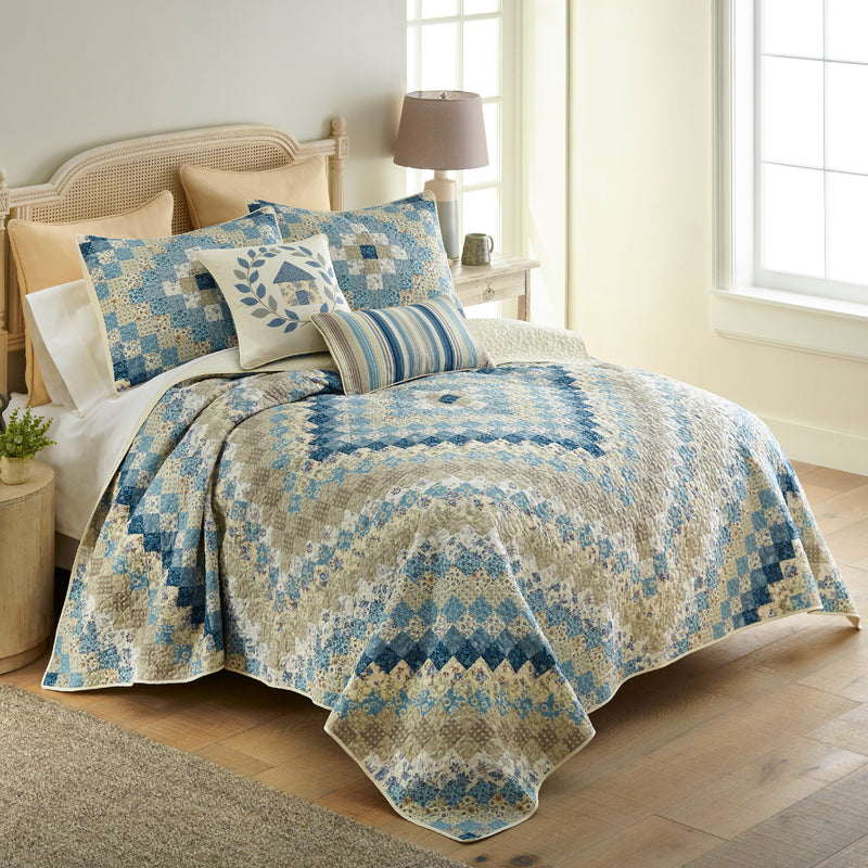 Rosehill Cottage Floral Gingham Patch Cotton King Quilt - 105x95 Dusty Rose & Natural Vintage Patchwork Bedding